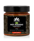 Mit der Hot Madras Curry Paste gelingt Ihnen jedes Curry mühelos. Einfach Gemüse, Geflügel oder Fleisch mit Zwiebeln und frischem Ingwer in Ghee anbraten, 1-2 Esslöffel der Paste hinzufügen und sanft köcheln lassen. Für eine besonders geschmacksintensive Note können Sie Ihr Gemüse, Fleischstücke oder Tofu vorab in der Paste marinieren. Verwandeln Sie Ihre Gerichte in cremige Köstlichkeiten, indem Sie Crème Fraîche, Frischkäse oder Creamed Coconut unterrühren.