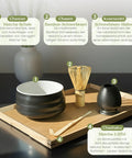 Erlebe die traditionelle Zubereitung von Matcha mit diesem hochwertigen Matcha Set – perfekt für Einsteiger, Genießer und alle, die die japanische Teezeremonie zu Hause erleben möchten. Das Set enthält alles, was du für einen cremigen, schaumigen Matcha brauchst: Matcha-Schale (Chawan), Bambusbesen (Chasen), Besenhalter (Kuse Naoshi) und Bambuslöffel (Chashaku).