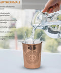 Dieser Kupferbecher wird aus 99,7 % reinem Kupfer gefertigt. Sein schlichtes, glattes Design vereint Tradition und Eleganz – ideal für zu Hause, im Büro oder unterwegs. Wasser aus einem Kupfergefäss schmeckt erfrischend rein und ist ein besonderes Erlebnis für alle, die Wert auf Natürlichkeit legen.