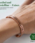 Das Kupferarmband vereint traditionelle Metallverarbeitung mit einem von der Natur inspirierten Design. Inspiriert von der Ruhe und Kraft des Waldes symbolisiert das Muster Wachstum, Stabilität und natürliche Harmonie.